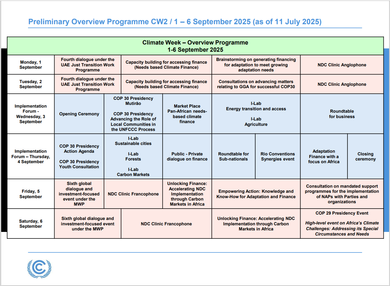 Overview CW2 programme Open English PNG 0.28 MB Publication date 21 Jul 2025 Document type Agenda Author UNFCCC Topic Climate Week