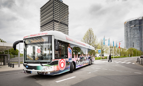UN bus électrique de la ville de Bonn devant le campus des Nations Unies
