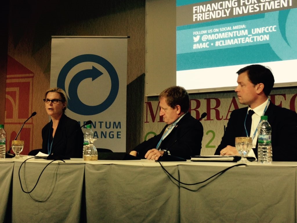 TJ DiCaprio (left), participating in the Momentum for Change: Climate Friendly Investments session at COP22, during which she also highlighted the launch of the latest Microsoft carbon program white paper, “Beyond carbon neutral: Expanding beyond our carbon neutral operations to accelerate global and local good.”